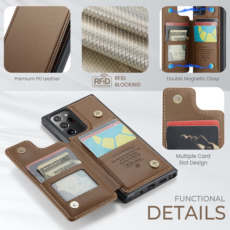 - Double Magnetic Closure: Dubbel magnetisk stängning säkerställer att dina kort och kontanter förvaras säkert.
