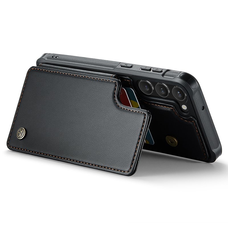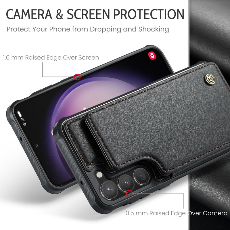 Denna premium TPU och PU-läderfodral kombinerar lyxigt utseende med pålitligt skydd. Med smarta funktioner som RFID-skydd och en kickstand-funktion, är detta fodral perfekt för den moderna användaren. Håll dina kort och kontanter säkra och lättillgängliga.