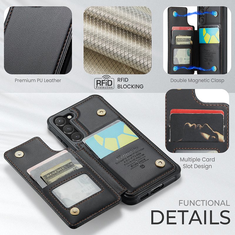- Double Magnetic Closure: Dubbel magnetisk stängning håller dina kort och kontanter säkra, vilket ger extra trygghet.