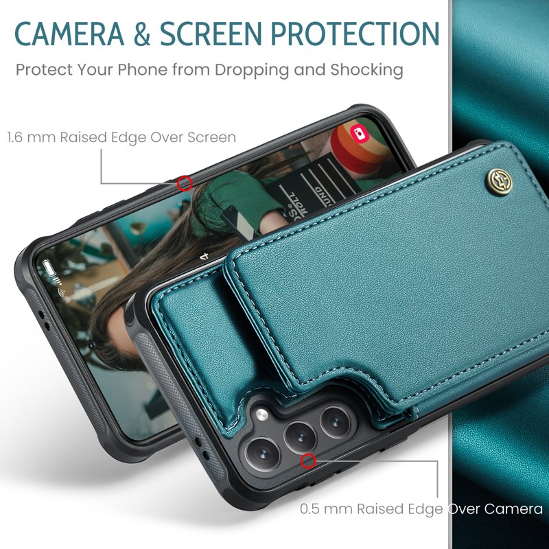 Denna premiumfodral kombinerar hållbarhet med elegans. Tillverkad av TPU och PU-läder med litchi-textur, erbjuder den både skydd och en lyxig känsla. Med smarta funktioner som RFID-skydd och kickstand är detta fodral perfekt för den moderna användaren.