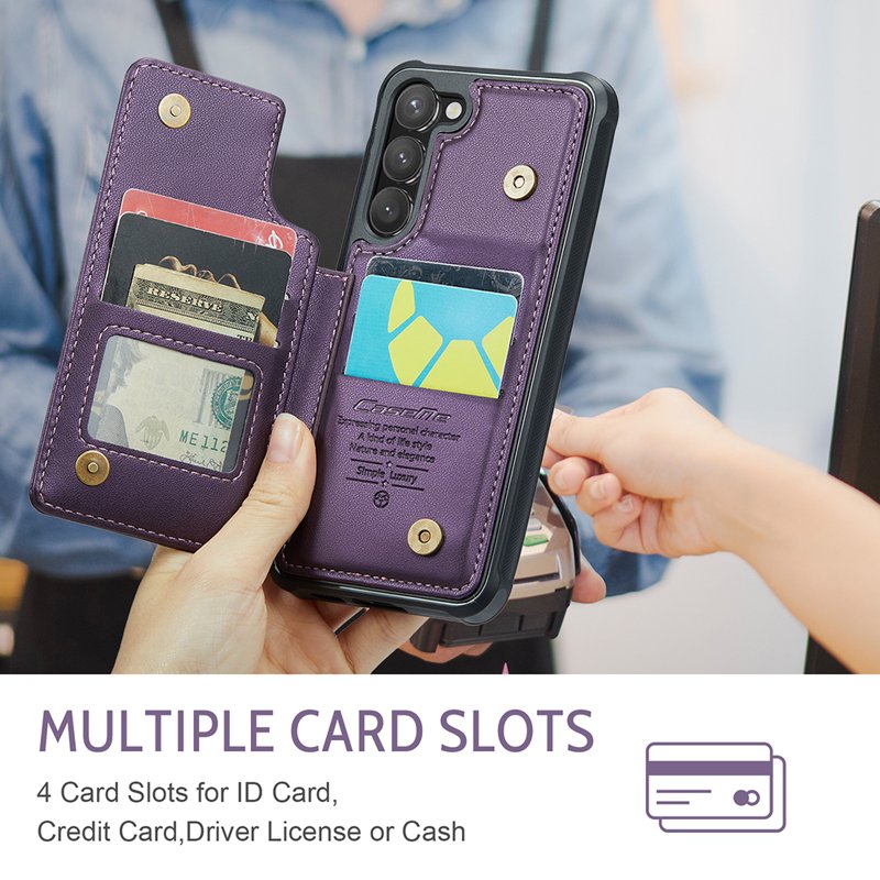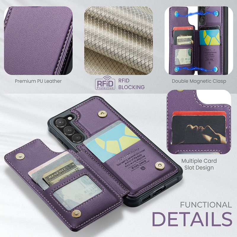 - Double Magnetic Closure: Den dubbla magnetiska stängningen håller dina kort och kontanter säkert förvarade.
