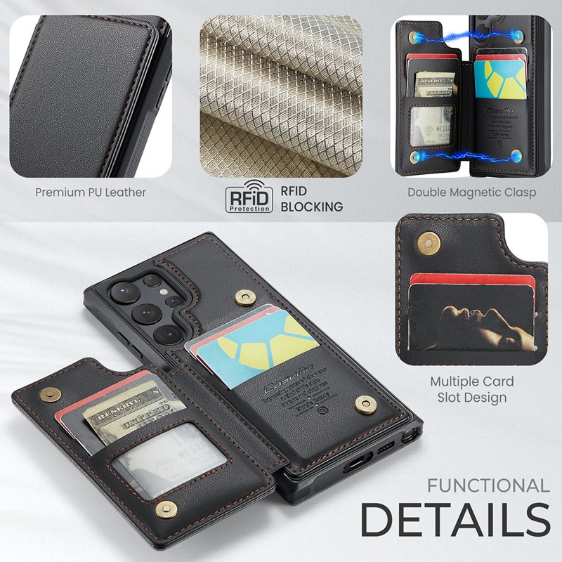 - Double Magnetic Closure: Dubbel magnetisk stängning säkerställer att dina kort och kontanter förvaras säkert.