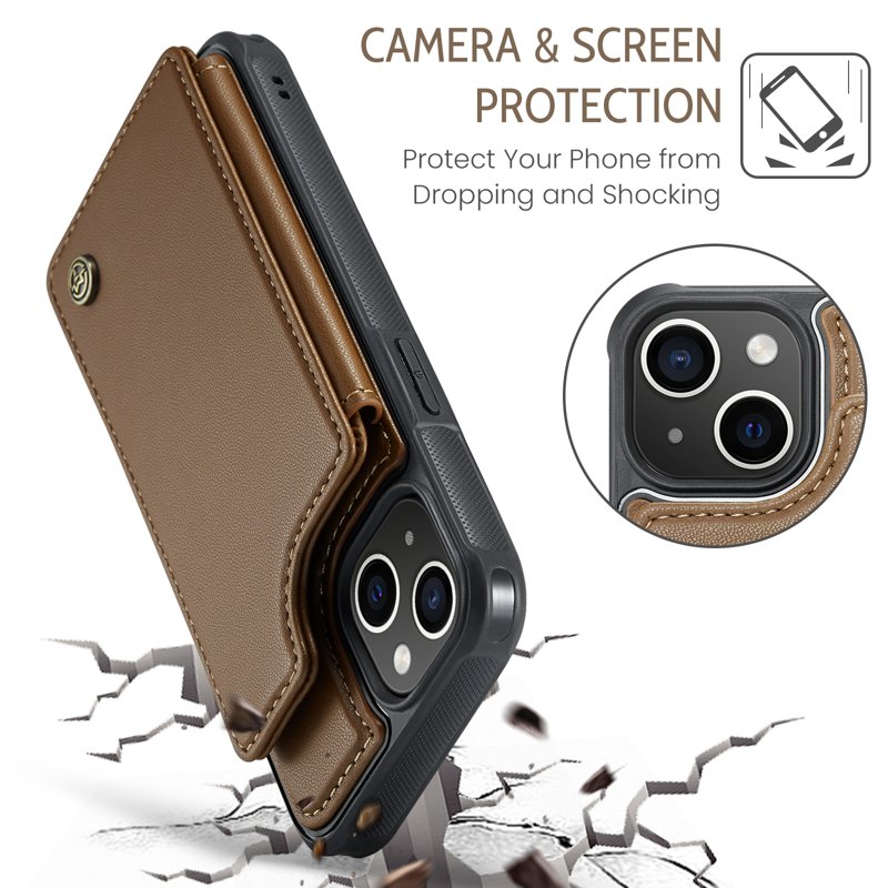 CASEME C22 iPhone 14 Plus Fodral Läder med RFID - Brun