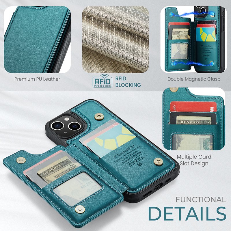 - Double Magnetic Closure: Dubbel magnetstängning säkerställer att kort och kontanter förvaras säkert.