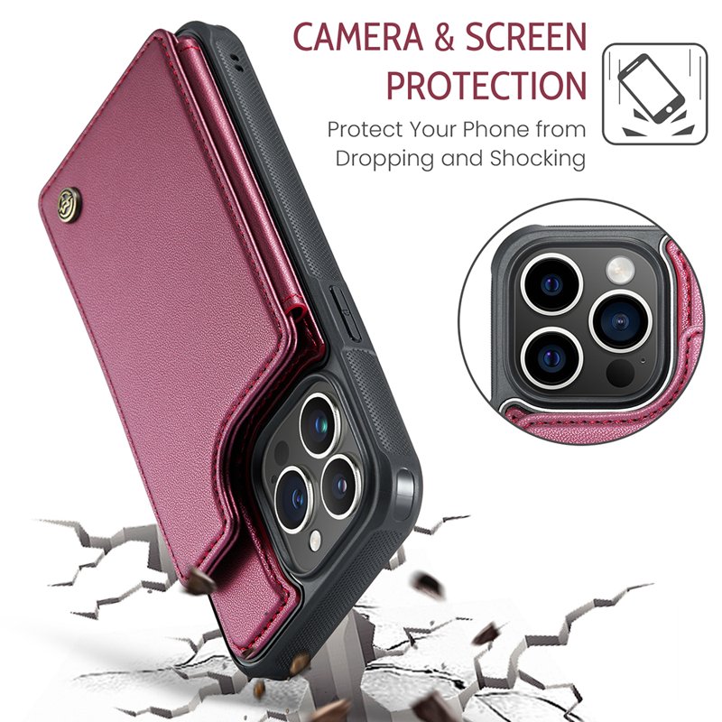 CASEME C22 iPhone 15 Pro Max Fodral Läder med RFID Röd