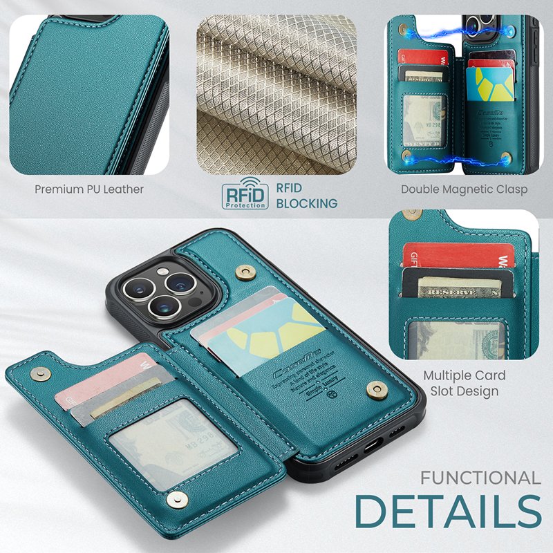 CASEME C22 iPhone 15 Pro Max Fodral Läder RFID Skydd Grön