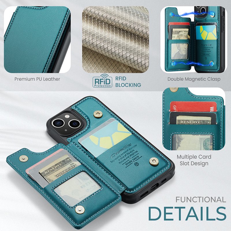 CASEME C22 iPhone 15 Skal i Läder med RFID, Grön
