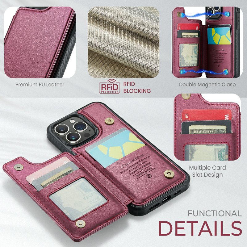 - Dubbelt magnetlås - Det dubbla magnetlåset säkerställer att dina kort och kontanter förvaras säkert.