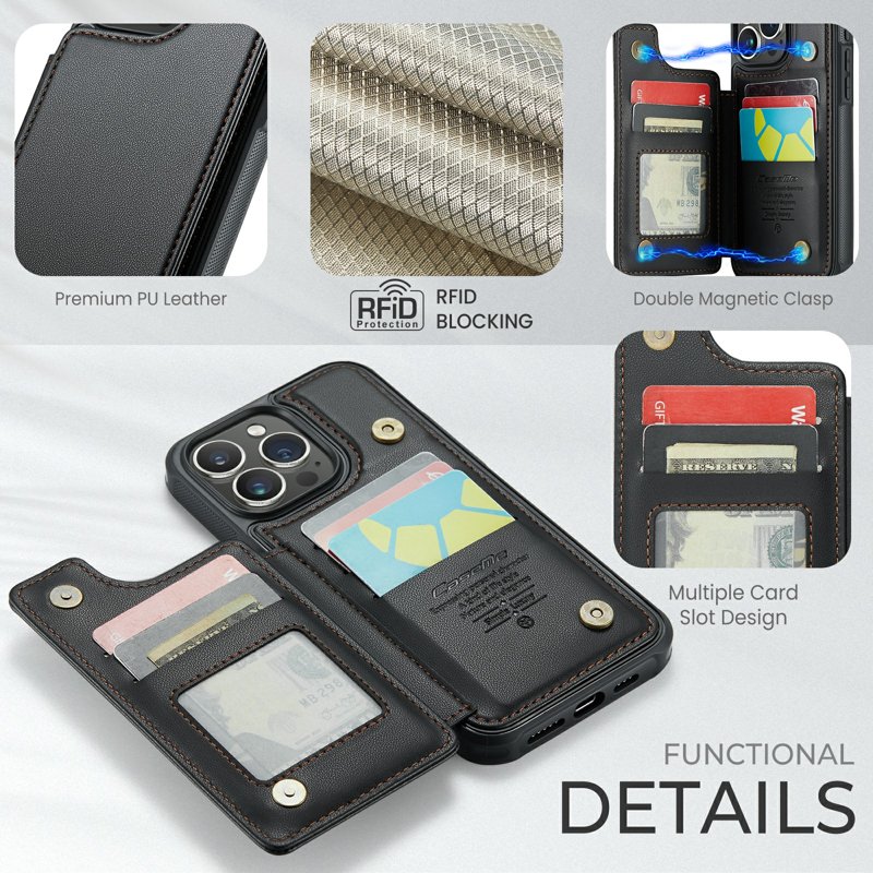 - Dubbelt magnetiskt stängning - Den dubbla magnetiska låsanordningen säkerställer att dina kort och kontanter förvaras säkert.