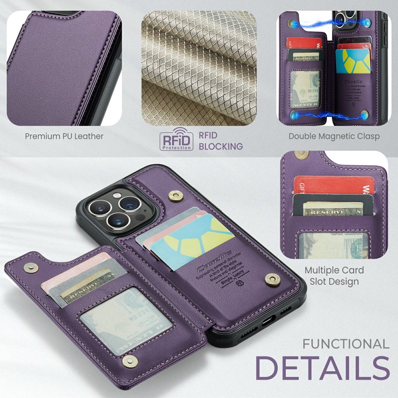 - Double Magnetic Closure: Dubbel magnetisk stängning säkerställer att kort och kontanter förvaras säkert.