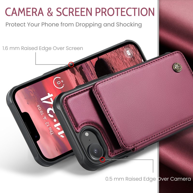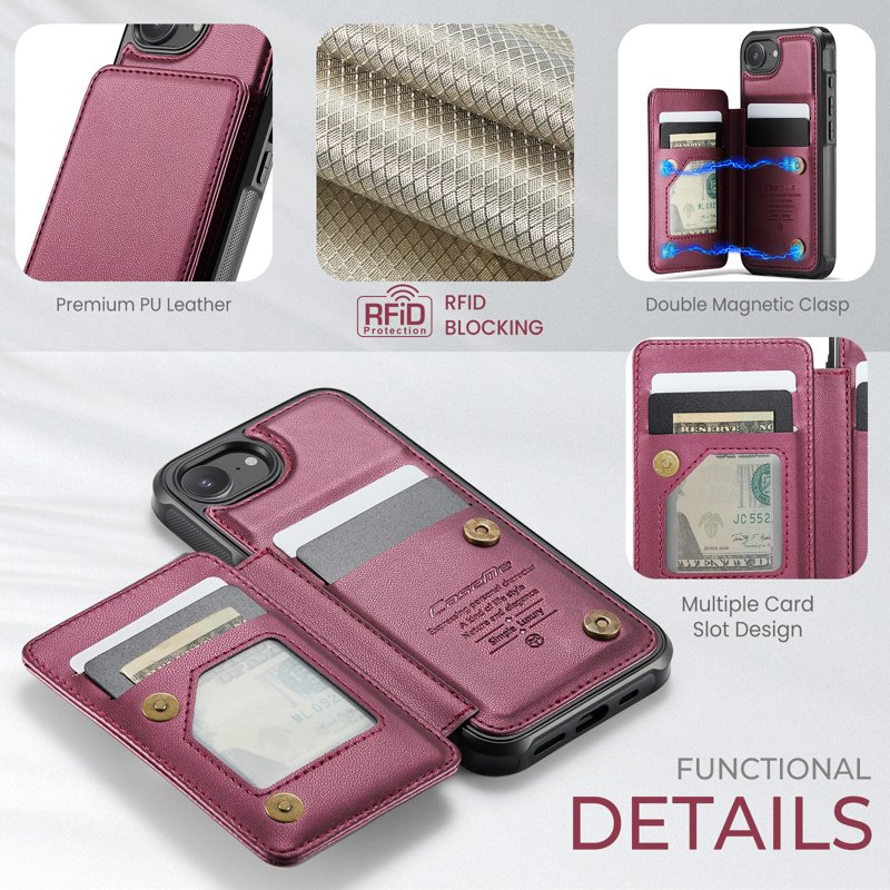 CASEME C22 iPhone 16e Fodral Läder med RFID Kortfack - Röd