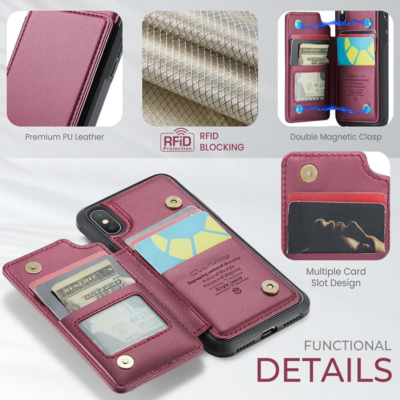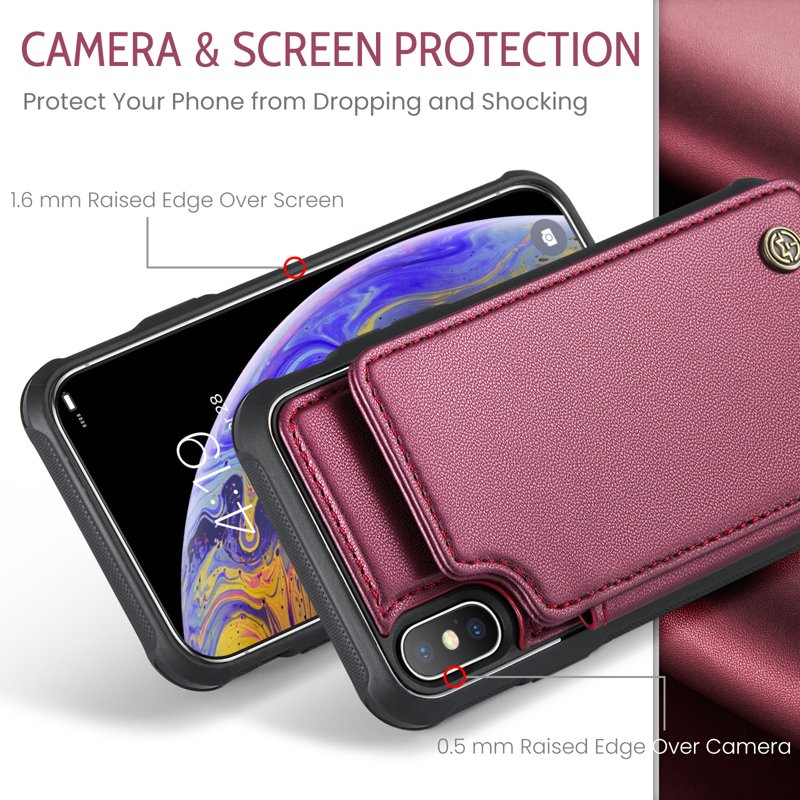 CASEME C22 iPhone XS Max Fodral Läder med RFID, Röd