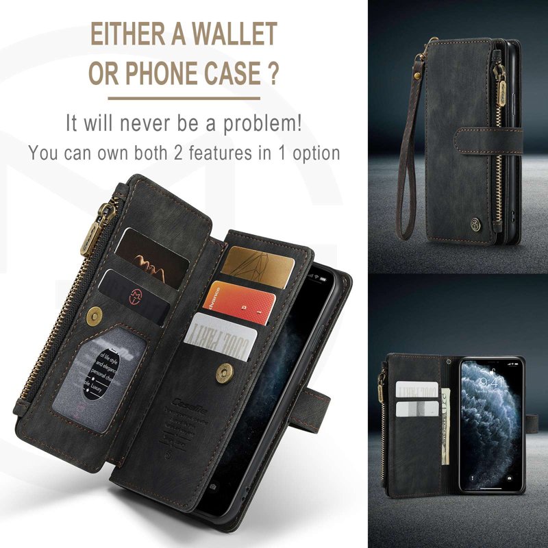 - Stort Dragkedjeutrymme: Unik dragkedja för enkel förvaring av sedlar, mynt och kort utan att repa skärmen.