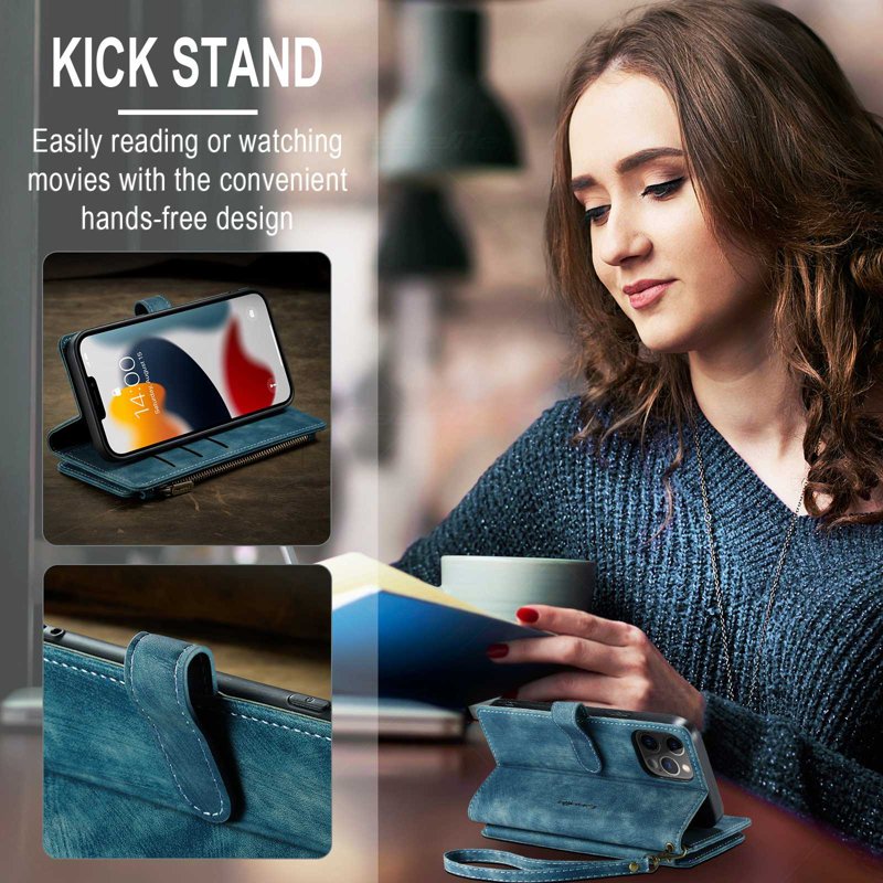- Stort Zipperutrymme: Unik dragkedja ger ett mjukt och rymligt utrymme för sedlar, mynt och kort utan att repa skärmen.