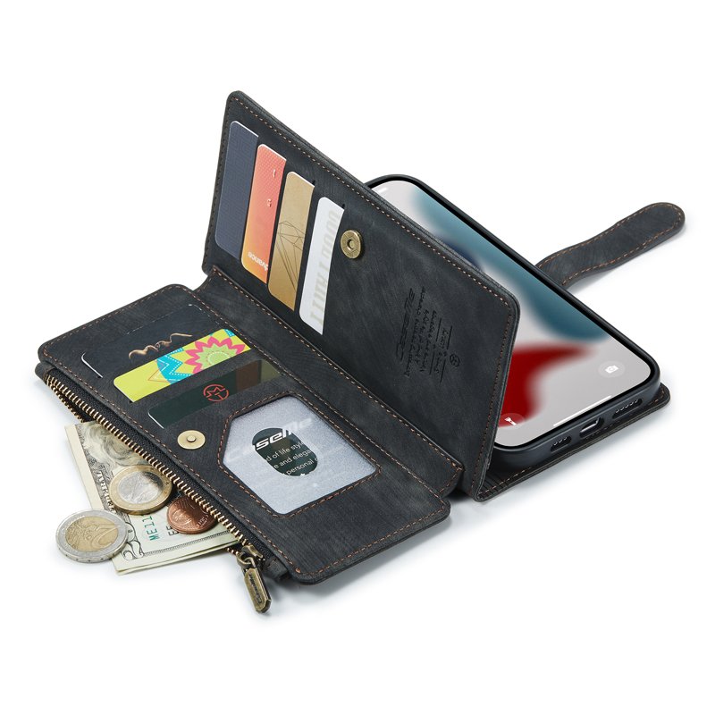 - Stort dragkedjeutrymme: Unik dragkedja ger mer plats för sedlar, mynt och kort utan att repa skärmen.