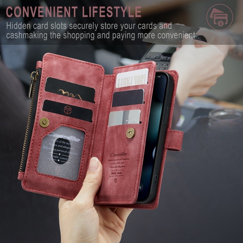 - Stort blixtlåsområde: Unik design med större utrymme för sedlar, mynt och kreditkort utan att repa skärmen.