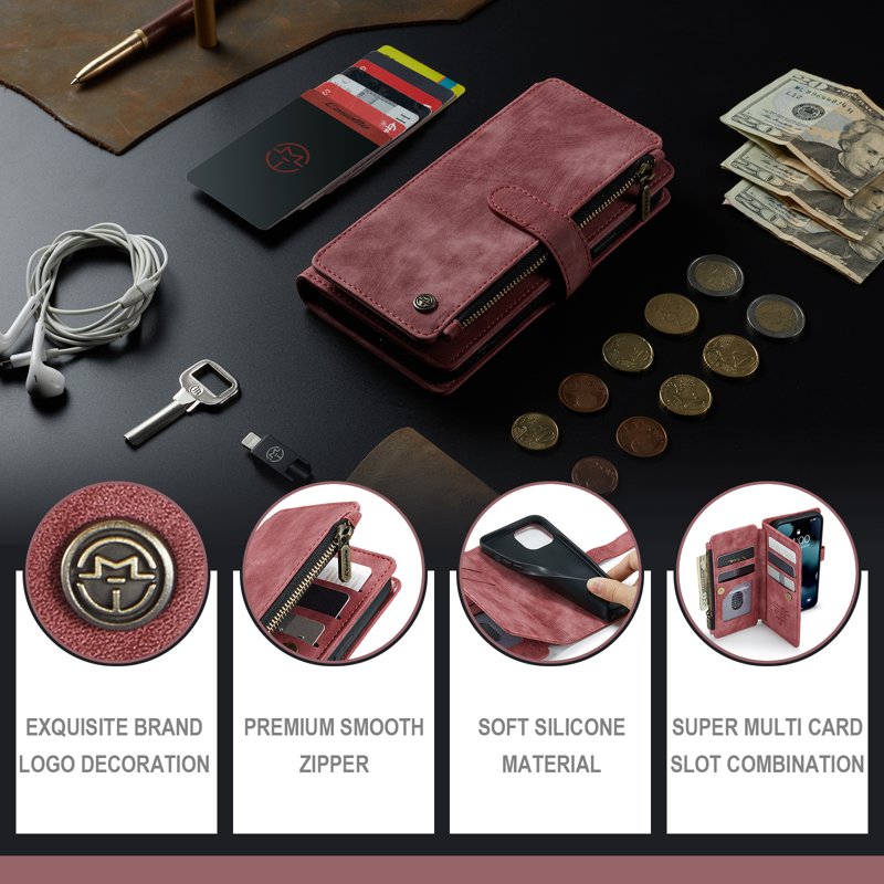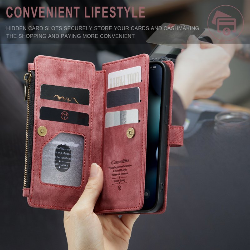 - Stort dragkedjeutrymme: Unik dragkedja ger mer utrymme för sedlar, mynt och kort utan att repa skärmen.