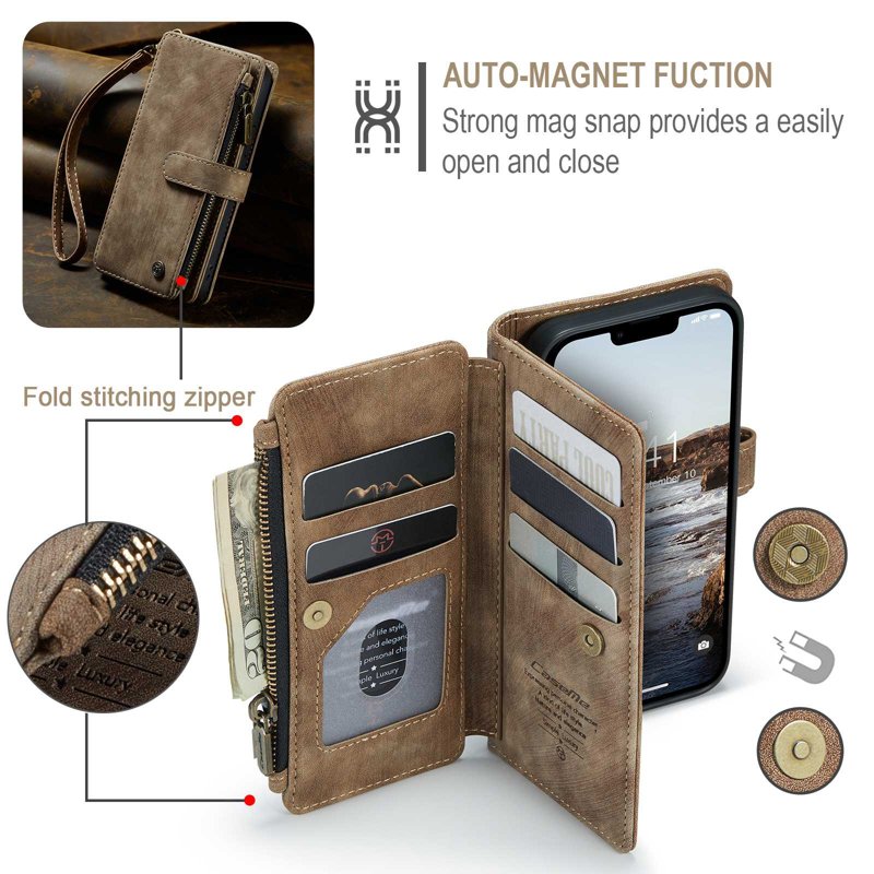 - Stort Zipperutrymme: Unik dragkedja ger mer plats för sedlar, mynt och kort utan att repa skärmen.