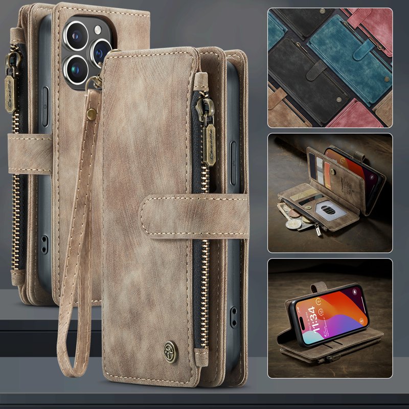 - Stort Zipperutrymme: Unik dragkedja ger mer plats för sedlar, mynt och kort utan att skada skärmen.