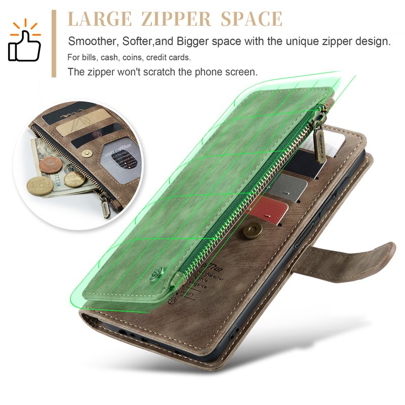 - Stort Zip-område: Unik zip-design ger mer utrymme för sedlar, mynt och kort utan att repa skärmen.