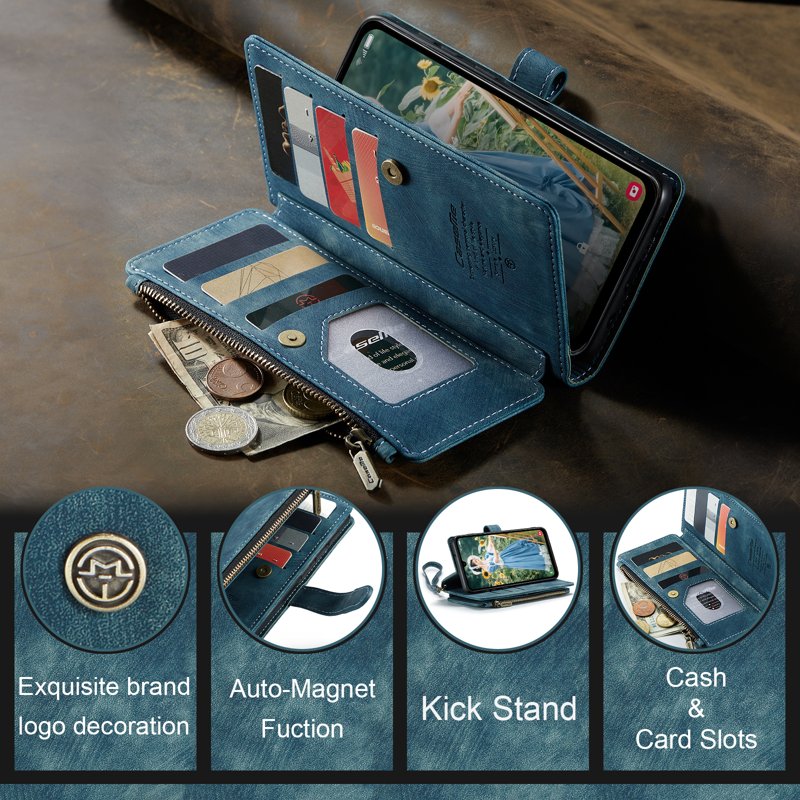 - Stort dragkedjeutrymme: Unik dragkedja ger ett mjukt och rymligt utrymme för sedlar, mynt och kreditkort utan att repa skärmen.