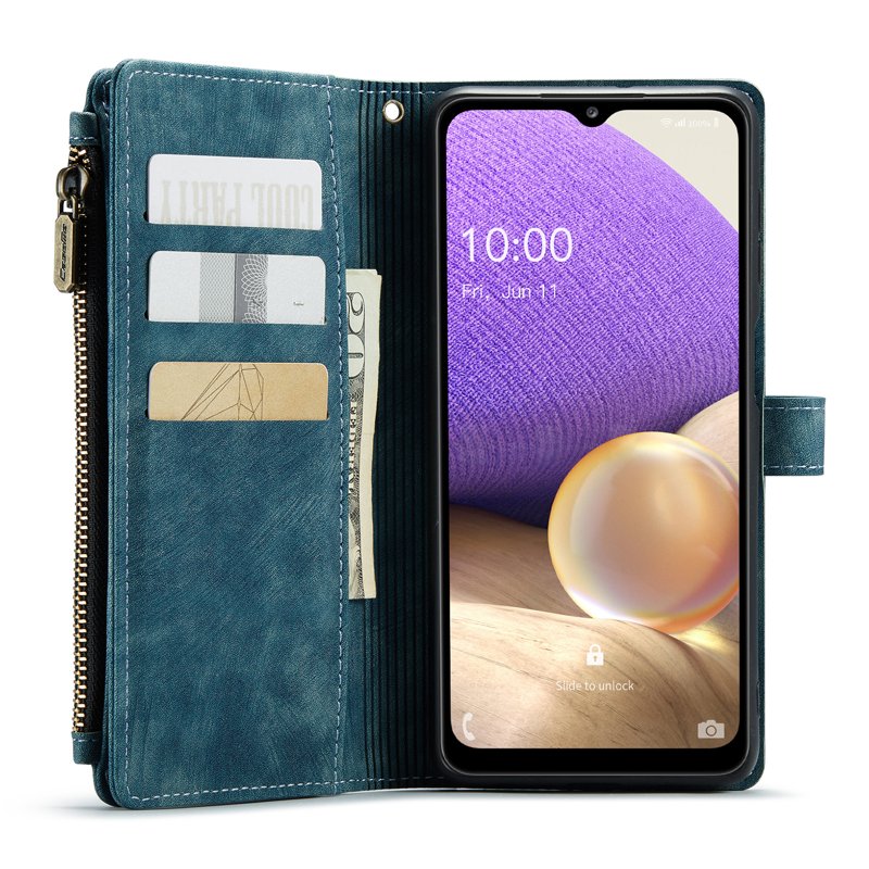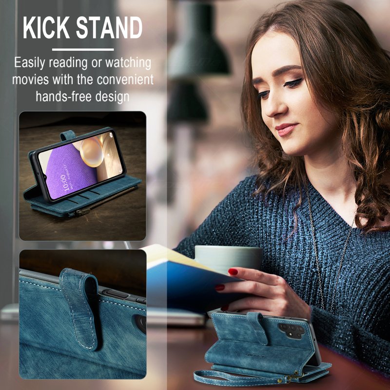 - Stort dragkedjeutrymme: Unik design för att enkelt förvara sedlar, mynt och kort utan att skada skärmen.