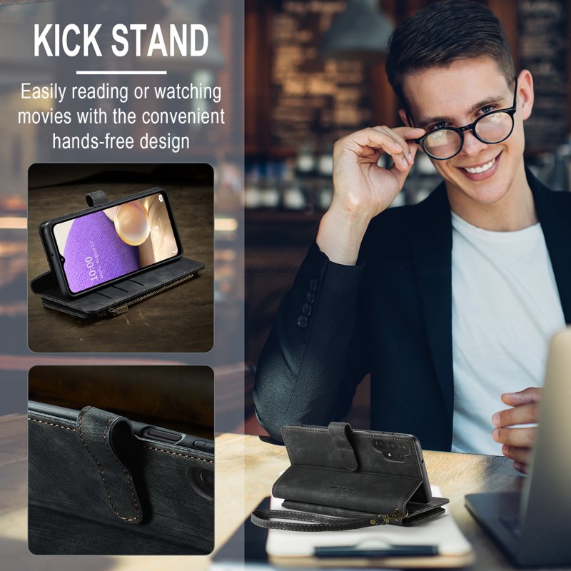- Stort Dragkedjeutrymme: Unik dragkedjedesign ger mer utrymme för sedlar, mynt och kort utan att repa skärmen.