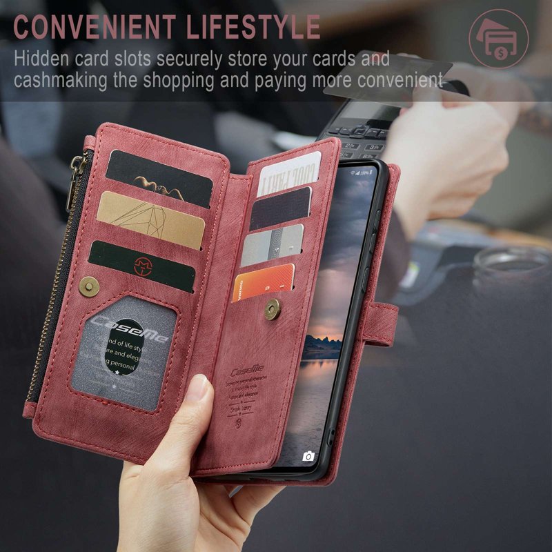 - Stort blixtlåsområde - Unik design ger mer utrymme för sedlar, mynt och kort utan att repa skärmen.