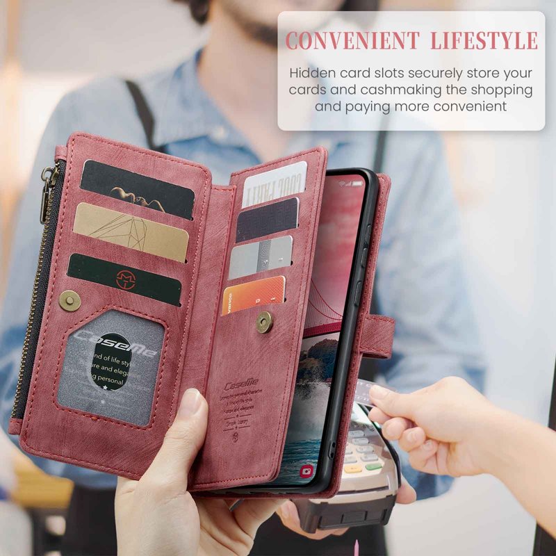 • Stort Zipperutrymme - Unik dragkedja ger ett mjukt och rymligt utrymme för sedlar, mynt och kort utan att repa skärmen.