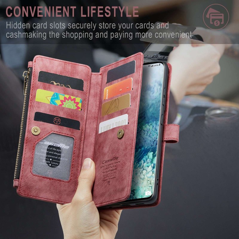 - Stort dragkedjeutrymme: Unik dragkedja ger mer plats för sedlar, mynt och kort utan att skada skärmen.