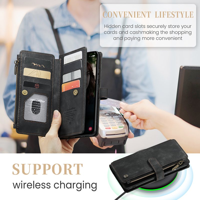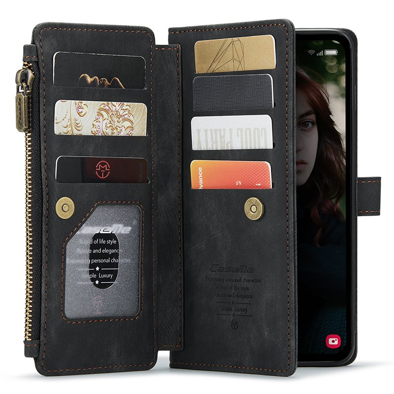 - Stort Dragkedjeutrymme: Unik design med större utrymme för sedlar, mynt och kort. Dragkedjan skadar inte skärmen.