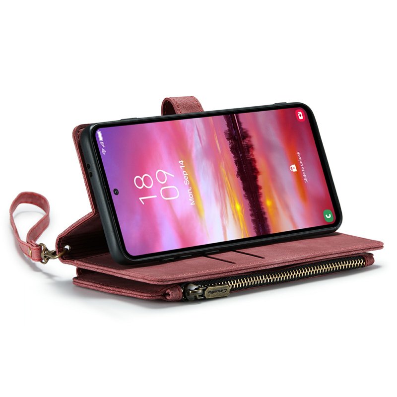 - Stort Dragkedjeutrymme: Unik dragkedjedesign ger mer utrymme för sedlar, mynt och kreditkort utan att repa skärmen.