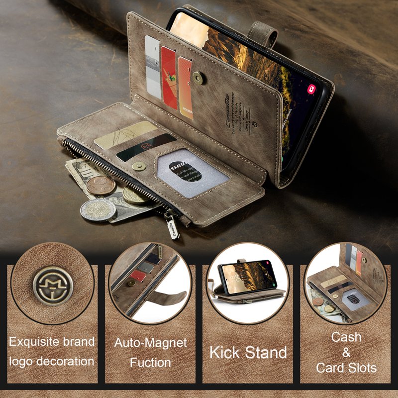 - Stort dragkedjeutrymme: Unik dragkedja ger mer utrymme för sedlar, mynt och kort utan att repa skärmen.
