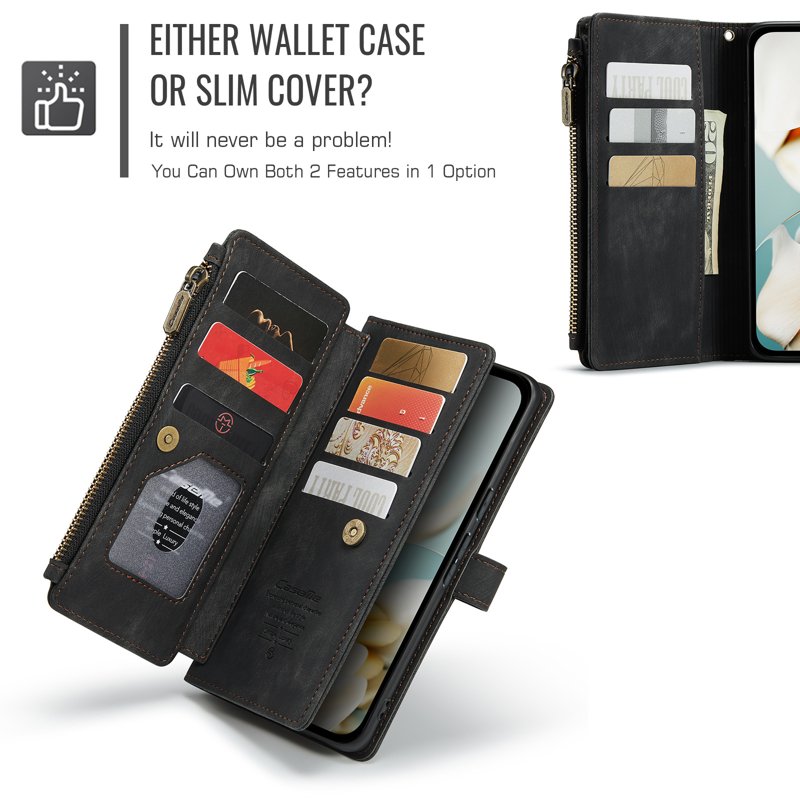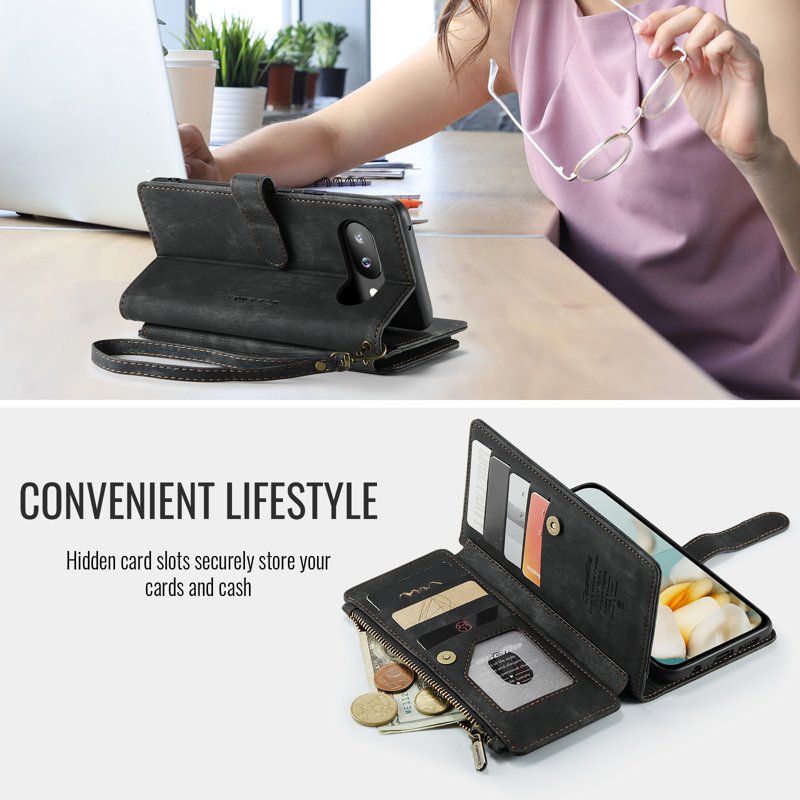 • Stort Zip-fack - Unik dragkedja ger mer utrymme för sedlar, mynt och kort utan att repa skärmen.