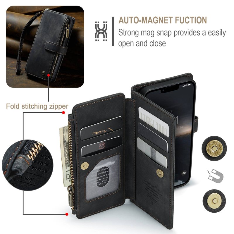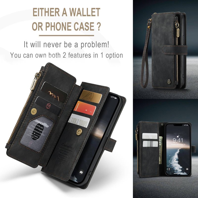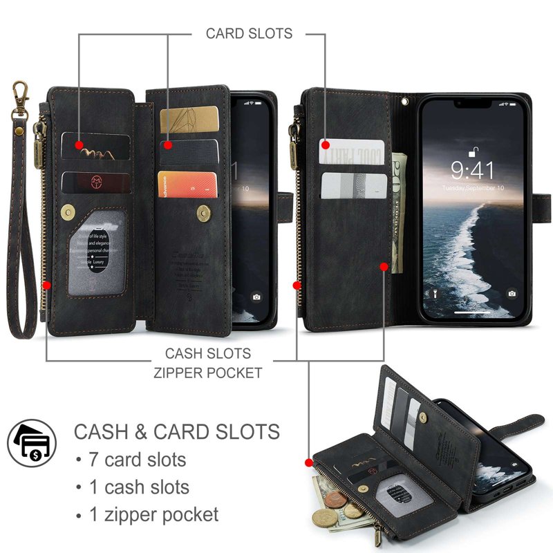 - Stort dragkedjeutrymme - Unik dragkedja ger ett mjukt och rymligt utrymme för sedlar, mynt och kreditkort utan att repa skärmen.