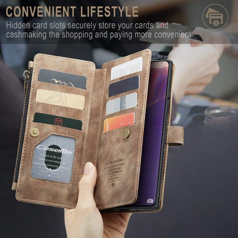 - Stort blixtlåsområde: Unik design med större utrymme för sedlar, mynt och kort. Blixtlåset skadar inte skärmen.