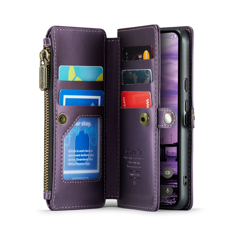 - Generösa kort- och kontantfack - Innehåller 10 kortfack, 1 kontantfack, 1 dragkedjefack och en dedikerad myntficka för organiserad förvaring.