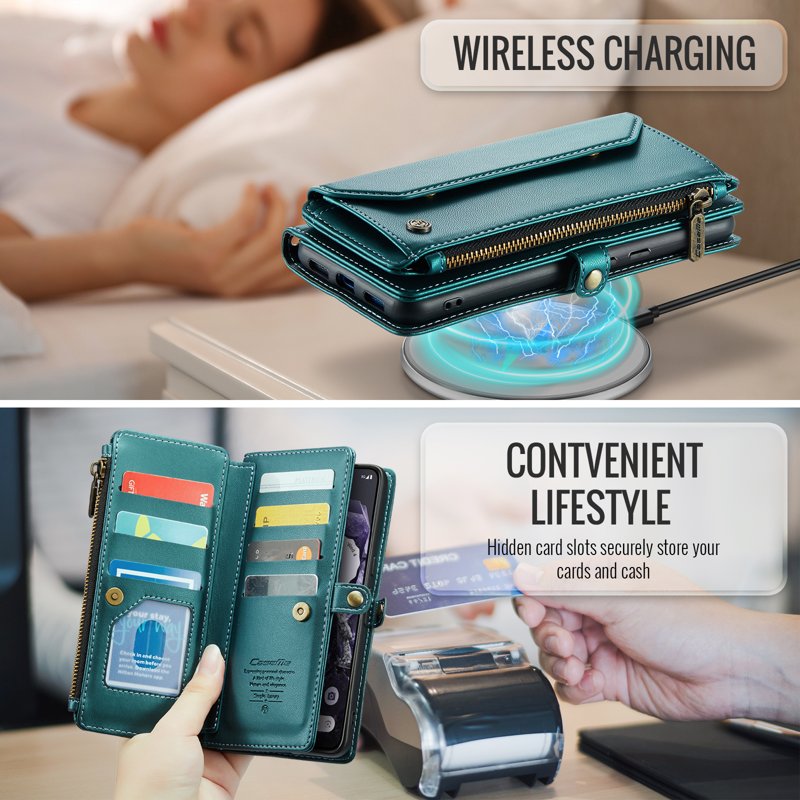 - Generösa kort- och kontantslotter: Innehåller 10 kortfack, 1 kontantfack, 1 dragkedjefack och en myntficka för organiserad förvaring.