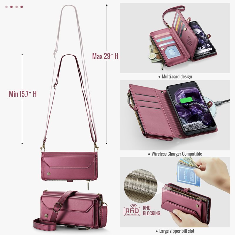 - Generösa kort- och kontantfack - Innehåller 10 kortfack, 1 kontantfack, 1 dragkedjefack och en dedikerad myntficka för organiserad förvaring.