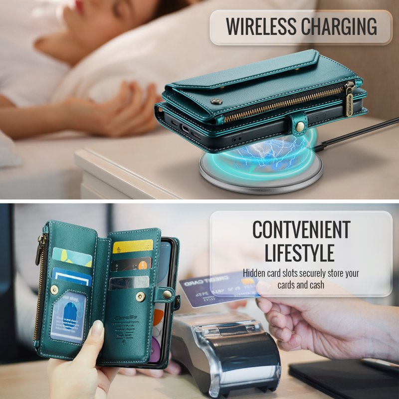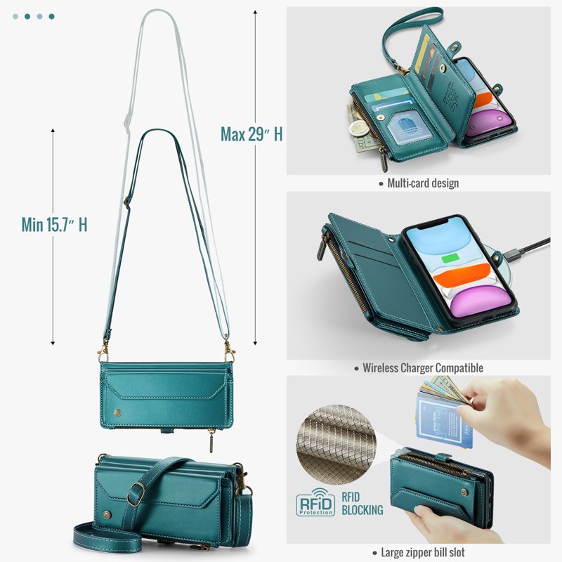 - Generösa kort- och kontantfack: Innehåller 10 kortfack, 1 kontantfack, 1 dragkedjefack och en myntficka för organiserad förvaring.