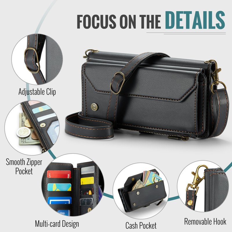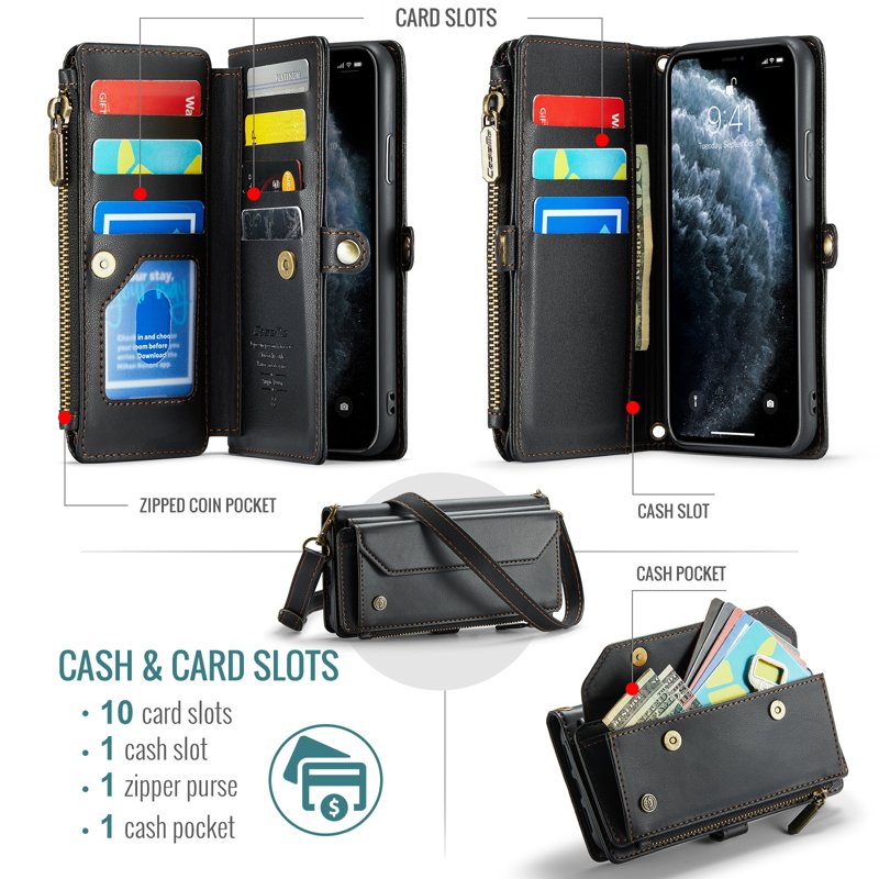 • Generösa kort- och kontantfack - Innehåller 10 kortfack, 1 kontantfack, 1 dragkedjefack och en myntficka för organiserad förvaring.