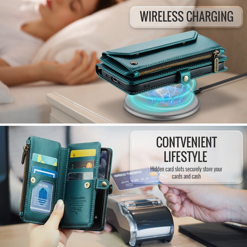 - Generösa kort- och kontantfack - Innehåller 10 kortfack, 1 kontantfack, 1 dragkedjefack och en myntficka för organiserad förvaring.