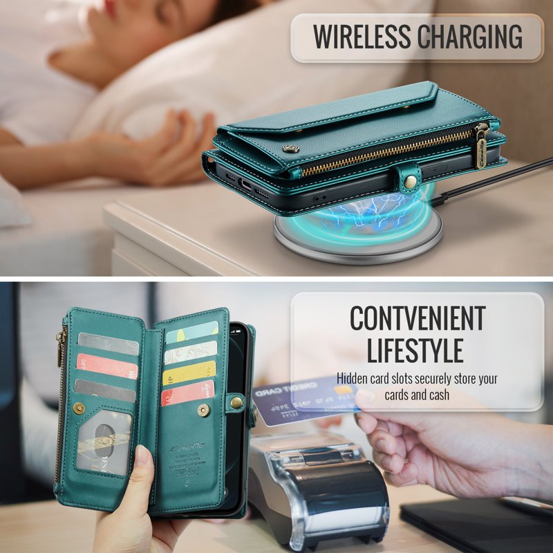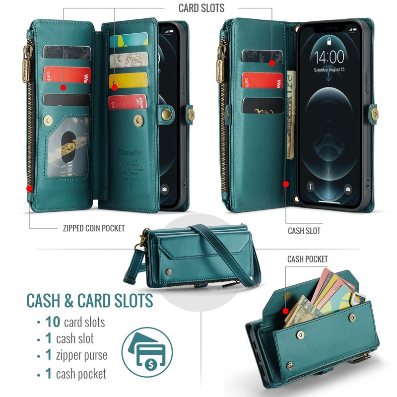 - Generösa kort- och kontantfack - Innehåller 10 kortfack, 1 kontantfack, 1 dragkedjefack och en myntficka för organiserad förvaring.