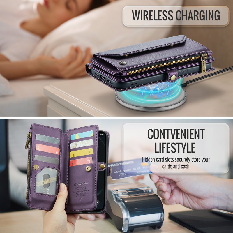 - Generösa kort- och kontantfack - Innehåller 10 kortfack, 1 kontantfack, 1 dragkedjefack och en dedikerad myntficka för organiserad förvaring.