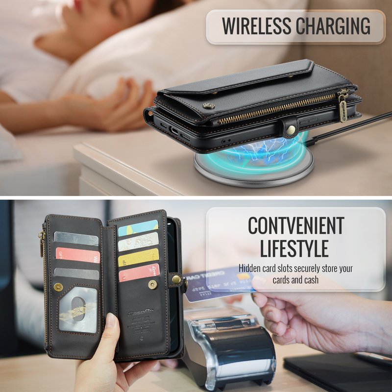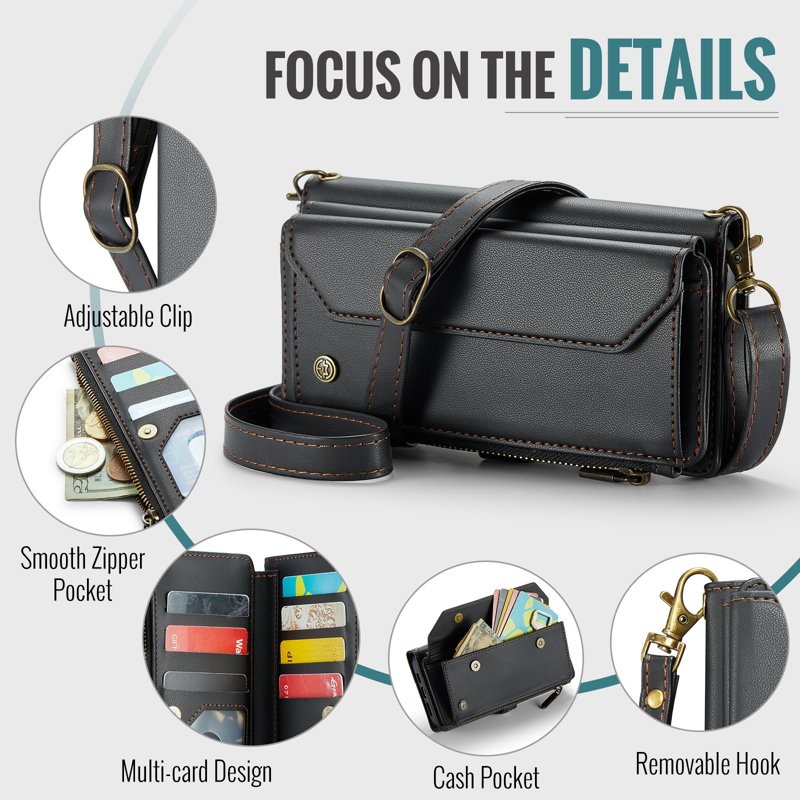 - Generösa kort- och kontantfack: Innehåller 10 kortfack, 1 kontantfack, 1 dragkedjefack och en dedikerad myntficka för organiserad förvaring.