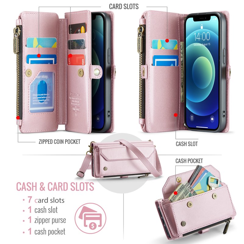CASEME Plånboksfodral Konstläder för iPhone 12/12 Pro - Rosa
