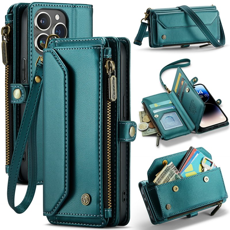 Handla denna produkt CASEME C36 Läderfodral för iPhone 14 Pro med kortfack - Grön