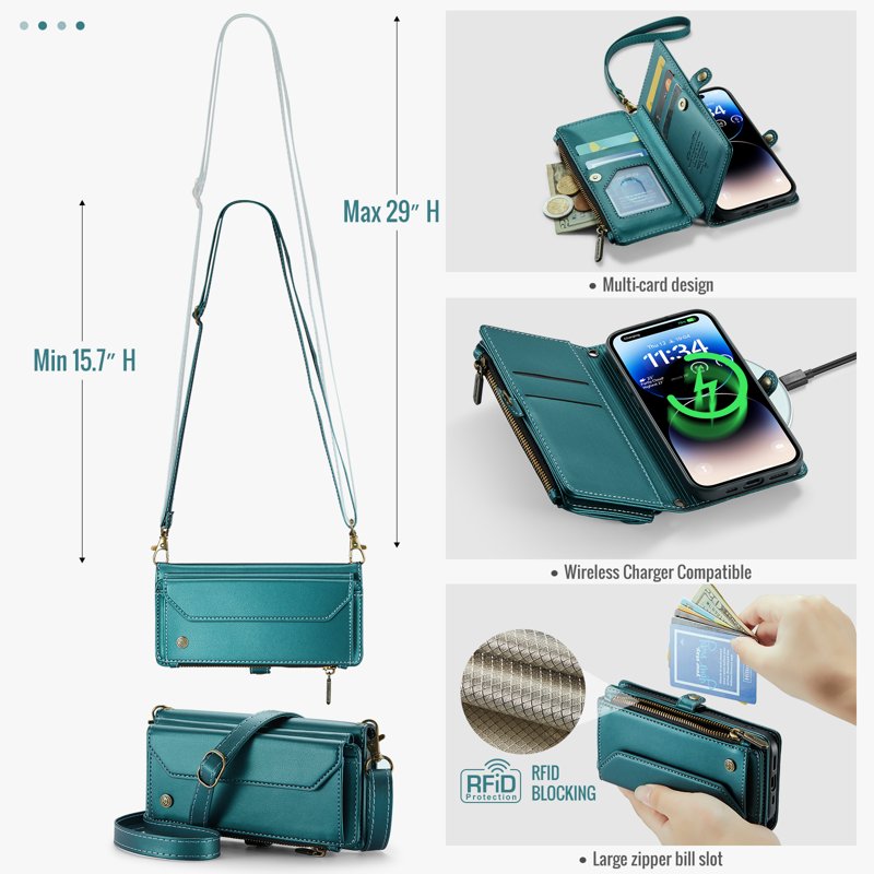• Generösa kort- och kontantfack - Innehåller 10 kortfack, 1 kontantfack, 1 dragkedjefack och en dedikerad myntficka för organiserad förvaring.