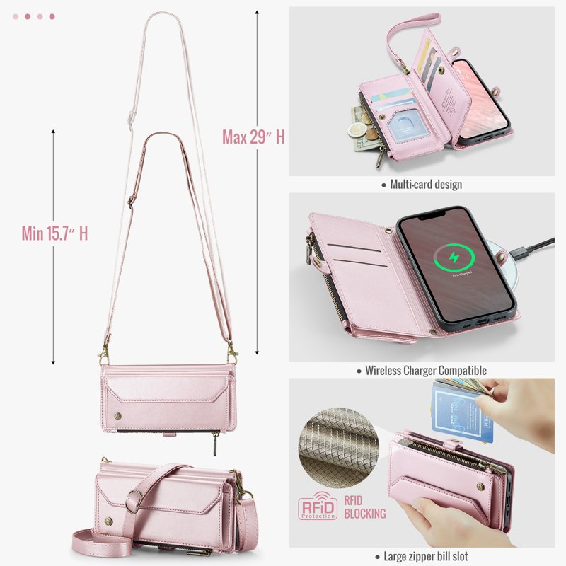 - Generösa kort- och kontantfack - Innehåller 10 kortfack, 1 kontantfack, 1 dragkedjefack och en myntficka för organiserad förvaring.