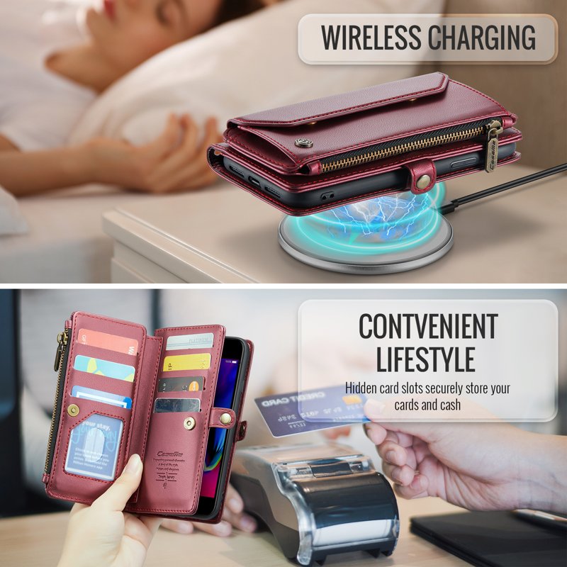 - Generösa kort- och kontantslotter: Innehåller 10 kortfack, 1 kontantfack, 1 dragkedjefack och en dedikerad myntficka för organiserad förvaring.